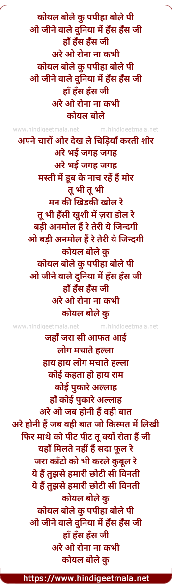 Lyrics of Koyal Bole Ku Papiha Bole Pi O - कोयल बोले कु पपीहा बोले पी ओ