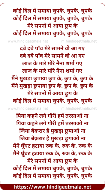 Lyrics of Koyee Dil Me Samaya Chupake Chupake Chupake - कोई दिल में समाया चुपके चुपक चुपके