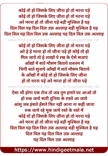 Lyrics of Koyee Toh Ho Jiske Liye, Jina Ho Toh Marna Pade - कोई तो हो जिसके लिए, जीना हो तो मरना पड़े