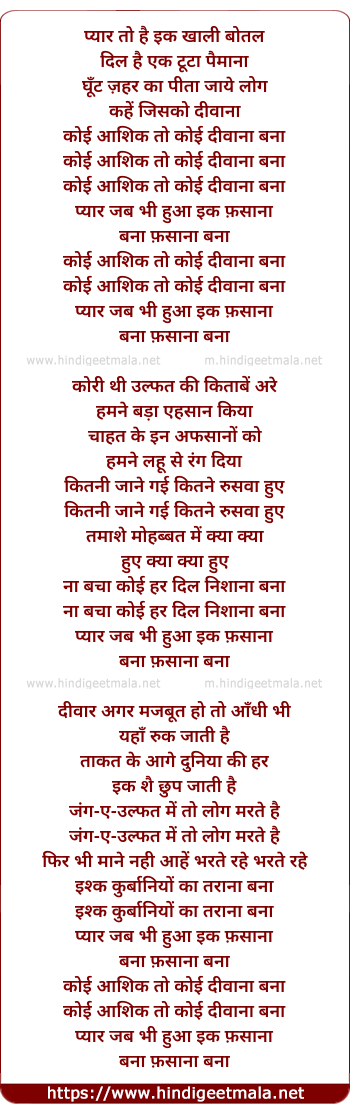 Lyrics of Koyi Aashiq Toh Koyi Deewaana Bana - कोई आशिक तो कोई दीवाना बना