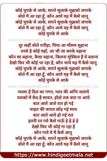 Lyrics of Koi Chupke Se Aake - कोई चुपके से आके