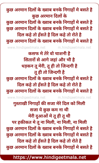 Lyrics of Kuch Arman Dilo Ke - कुछ अरमान दिलों के