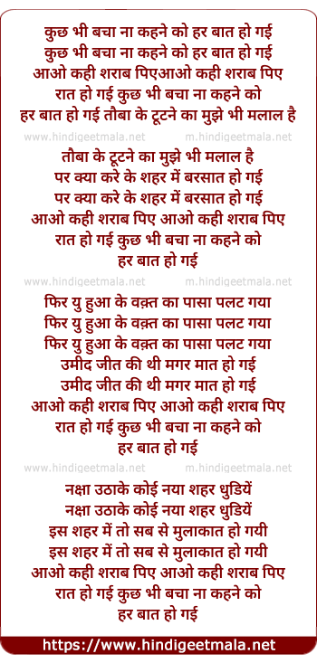 Lyrics of Kuch Bhi Bacha Na Kahne Ko - कुछ भी बचा न कहने को