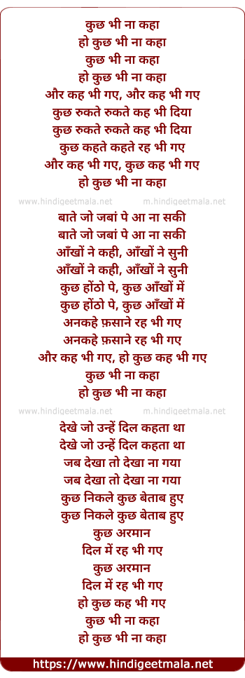Lyrics of Kuch Bhi Na Kaha - कुछ भी ना कहा