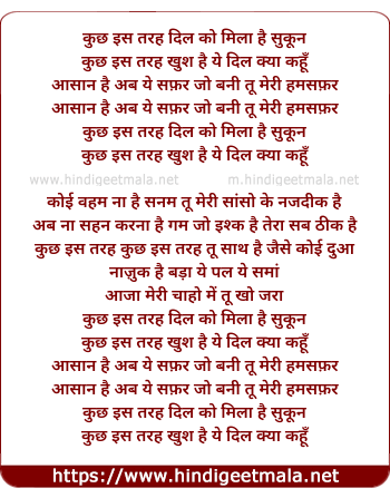 Lyrics of Kuch Is Tarah Khush Hai Yeh Dil - कुछ इस तरह खुश है ये दिल