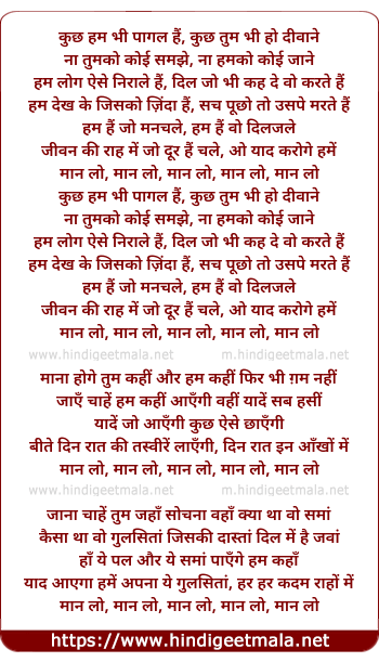 Lyrics of Kuchh Ham Bhee Paagal Hain - कुछ हम भी पागल हैं