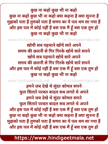 Lyrics of Kuchh Na Kaho, Kuchh Bhi Na Kaho - कुछ ना कहो, कुछ भी ना कहो