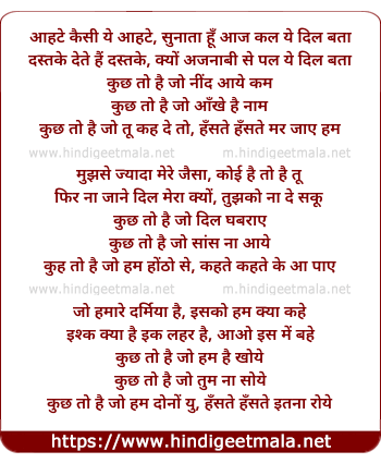 aahate kaisi ye aahate, sunta hoon aaj kal ye dil bata