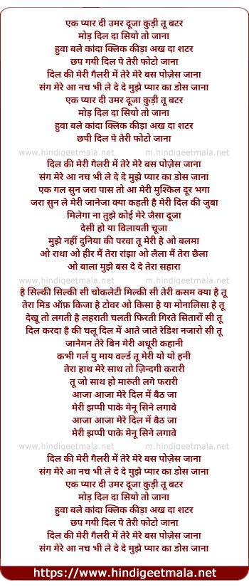 Lyrics of Kudi Tu Butter - Reprise - एक प्यार दी उमर दूजा कुड़ी तू बटर