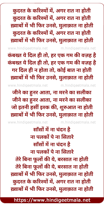 Lyrics of Kudrat Ke Karishmo Mein - कुदरत के करिश्मों में, अगर रात ना होती