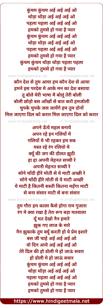 Lyrics of Kuncham Kuncham Ayi Ayi Ayi O - कुंचम कुंचम अई अई अई ओ