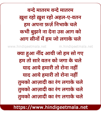 Lyrics of Khush Raho Kush Raho Ahal-E-Vatan - ख़ुश रहो ख़ुश रहो अहल-ए-वतन