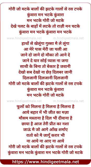 Lyrics of Kutchi Kutchi Gori Jo Matke - गोरी जो मटके बालों की झटके गालों से रस टपके