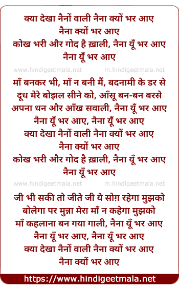 Lyrics of Kya Dekha Nainon Vaali Naina Kyon Bhar Aaye - क्या देखा नैनों वाली नैना क्यों भर आए