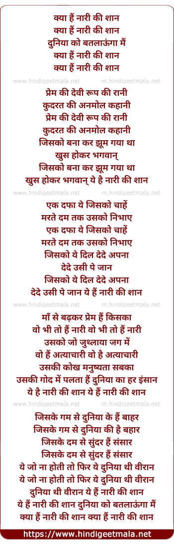 Lyrics of Kya Hai Nari Ki Shaan - क्या हैं नारी की शान