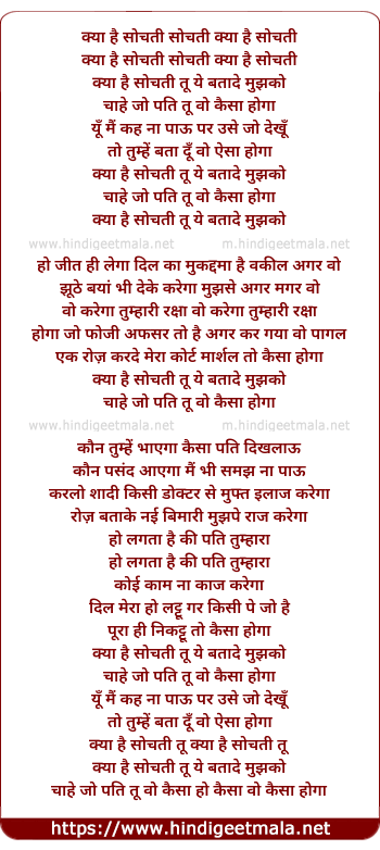 Lyrics of Kya Hai Sochati Tu - क्या है सोचती तू