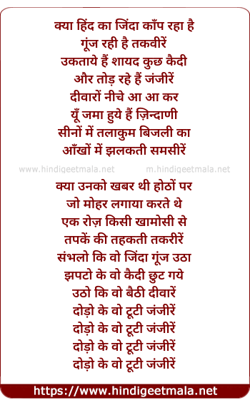 Lyrics of Kya Hind Ka Zinda - क्या हिंद का जिंदा काँप रहा है