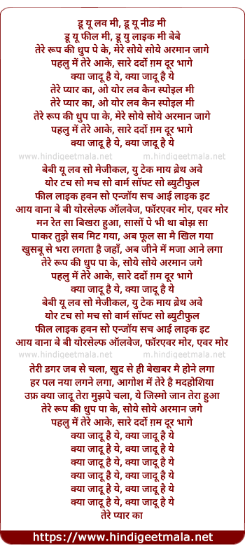 Lyrics of Kya Jadu Hai Ye Tere Pyar Ka - क्या जादू है ये तेरे प्यार का