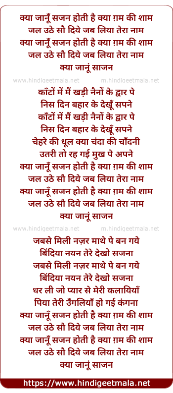 Lyrics of Kya Janoo Sajan Hoti Hai Kya Gham Ki Shaam - क्या जानूँ सजन होती है क्या ग़म की शाम