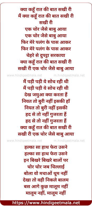 Lyrics of Kya Kahu Raat Ki Baat Sakhi Ri - क्या कहूँ रात की बात सखी री