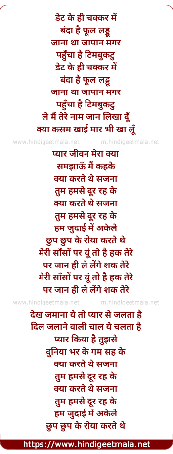 Lyrics of Kya Karte The Sajna - क्या करते थे साजना