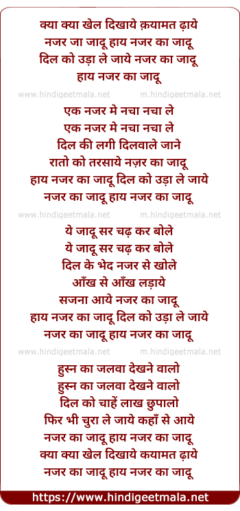 Lyrics of Kya Kya Khel Dikhaye Kayamat Dhaye - क्या क्या खेल दिखाये क़यामत ढ़ाये