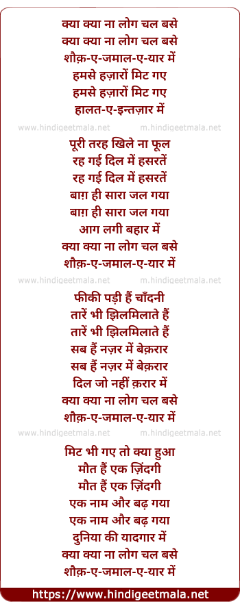 Lyrics of Kya Kya Naa Log Chal Base - क्या क्या ना लोग चल बसे