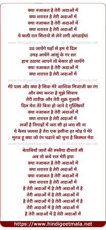 Lyrics of Kya Najakat Hai Teree Adaao Me - क्या नजाकत है तेरी अदाओं में