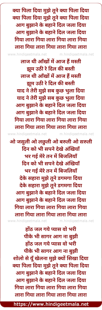 Lyrics of Kya Pila Diya Tune Mujhe - क्या पिला दिया तूने मुझे