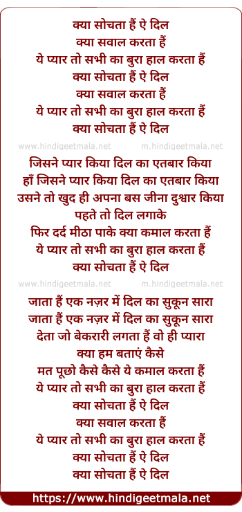 Lyrics of Kya Sochata Hai Ae Dil - क्या सोचता हैं ऐ दिल
