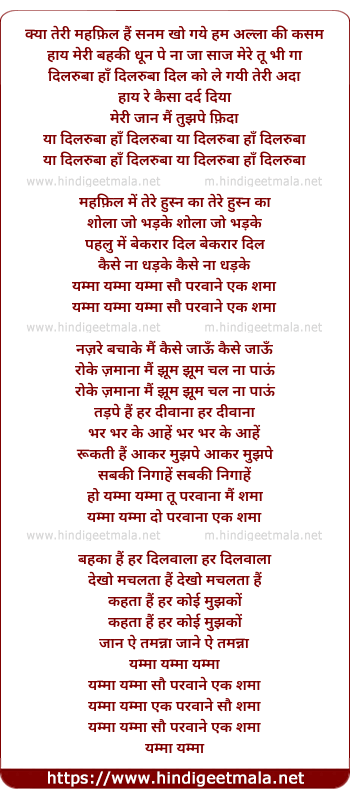 Lyrics of Kya Teri Mehfil Hai Sanam - क्या तेरी महफ़िल हैं सनम