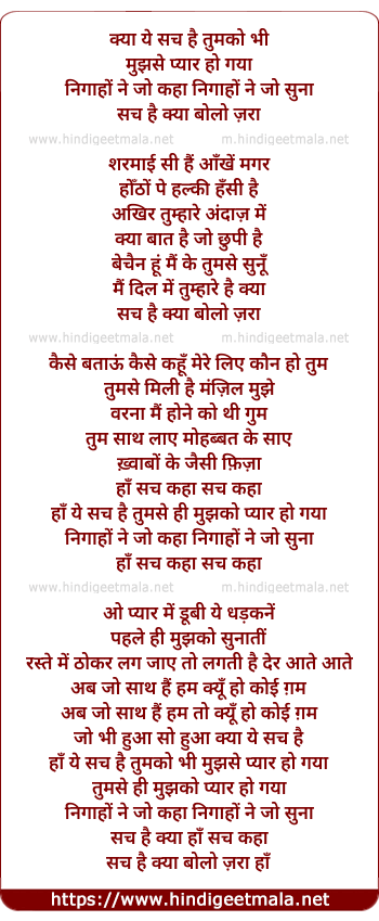 Lyrics of Kya Ye Sach Hai Tumko Bhi - क्या ये सच है तुमको भी