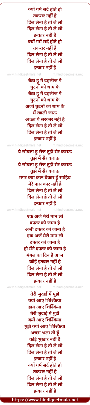 Lyrics of Kyo Garm Sard Hote Ho - क्यों गर्म सर्द होते हो