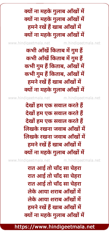 Lyrics of Kyo Mehke Gulab Aankho Me - क्यों ना महके गुलाब आँखों में