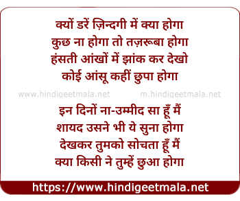 Lyrics of Kyon Dare Zindagi Se - क्यों डरें ज़िन्दगी से