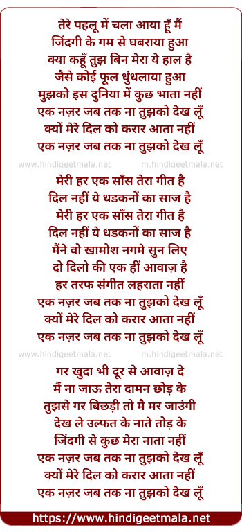 Lyrics of Kyu Mere Dil Ko Karaar Aata Nahi - क्यूँ मेरे दिल को करार आता नहीं