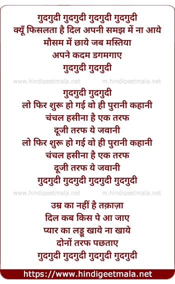 Film CastJugal Hansraj, Pratibha Sinha, Satish Kaushik, Anupam Kher, Mushtaq Khan, Shahrukh Khan, Prateeksha Lonkar, Deb Mukherjee, Jaya BhattacharyaSingerKumar Sanu, Kavita Krishnamurthy, Vinod RathodLyricistAmit Khanna, Yogesh GaudMusic ByBappi LahiriDirectorBasu ChatterjeeProducerMahesh Bhatt, Amit KhannaExternal LinksGudgudee at IMDB Gudgudee at WikipediaYouTubeGudgudee at YT
