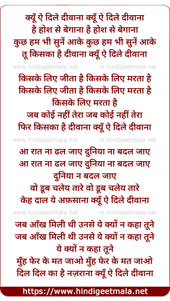 Lyrics of Kyu Ye Dil Diwana - क्यूँ ये दिले दीवाना, क्यूँ ये दिले दीवाना