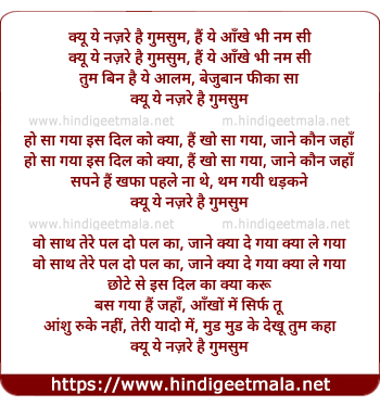 Lyrics of Kyu Ye Nazre Hain Gumsum - क्यूँ ये नज़रे है गुमसुम