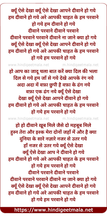 Lyrics of Kyun Aise Dekha Aap Ne Deewane Ho Gaye - क्यूँ ऐसे देखा आपने दीवाने हो गये