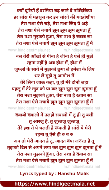 tera nasha aise nachye jhum jhum jhum jhumta hu mai
