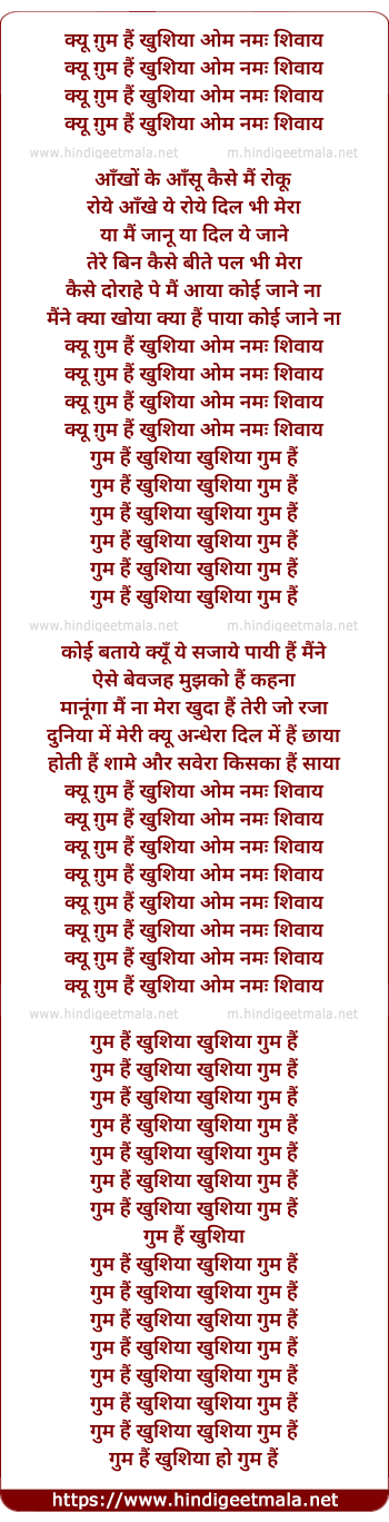 Lyrics of Kyun Gum Hai Khushiyan - क्यू ग़ुम हैं खुशिया