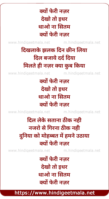 Lyrics of Kyun Pheri Nazar - क्यूँ फेरी नज़र