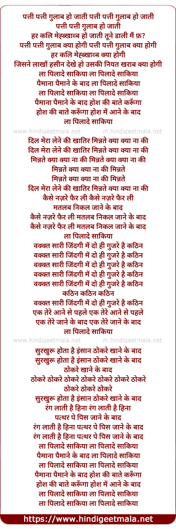Lyrics of La Pilade Saqiya - पत्ती पत्ती गुलाब हो जाती पत्ती पत्ती गुलाब हो जाती