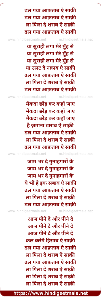 Lyrics of La Pilade Sharab Saqi - ढल गया आफ़ताब ऐ साक़ी