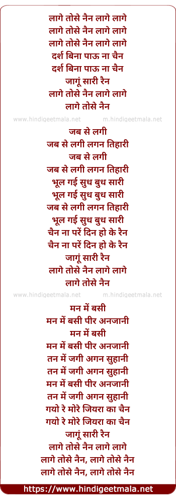 Lyrics of Lage Tose Nain Daras Bin - लागे तोसे नैन दर्स बिन