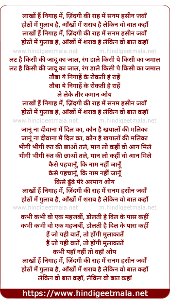 Lyrics of Laakho Hai Nigaah Me - लाखों हैं निगाह में