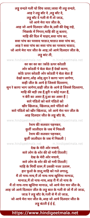 Poetic Translation - Lyrics of Laddu Vand Di Gali De