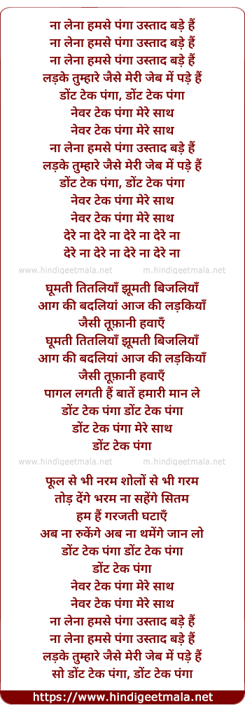 Lyrics of Ladke Tumhare Jaise Meri Jeb Me Pade Hai, Don't Take A Panga - लड़के तुम्हारे जैसे मेरी जेब में पड़े हैं, डोंट टेक पंगा