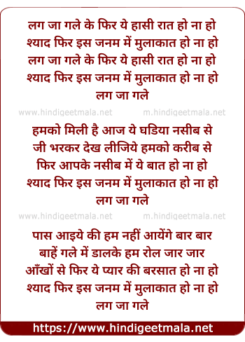 lag ja gale ke phir ye haasi raat ho na ho